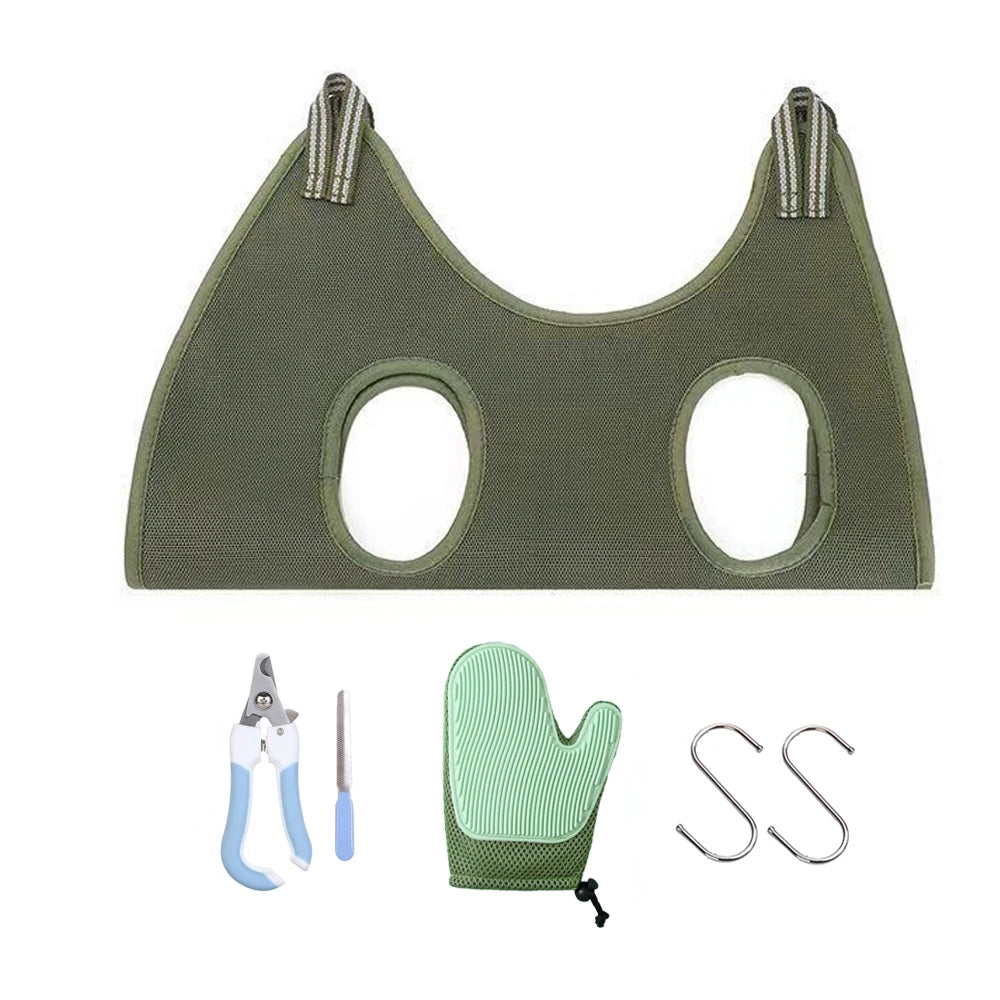 Designed for hassle-free grooming, this hammock doubles as a nail-cutting haven. The clip at the top ensures your pet stays securely suspended, making those tricky grooming procedures a breeze. Hanging it up is a cinch too – it's like a pet spa in a bag that's ready to swing into action whenever you need it. Say goodbye to the grooming blues and hello to a stress-free, stylish experience for you and your four-legged diva. Our Pet Grooming Hammock: because your pet's grooming routine deserves a touch of glamour and a dash of suspenders!