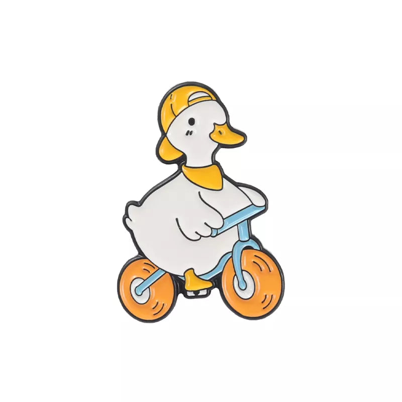 Quack your way into style with our "Biking Duck Enamel Pin" – a feathered friend that's pedal-powered and cuteness certified! Crafted from high-quality zinc alloy, this adorable pin features a charming duck confidently cruising on a bicycle, proving that even our feathered friends know how to roll in style.