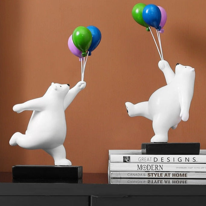 Add a touch of playful charm to your space with "Henry The Bear," an endearing polar bear statuette caught in a delightful dance with a bunch of colorful helium balloons. Crafted from eco-friendly resin, this enchanting piece captures the essence of Nordic whimsy and brings a dash of joy to your living room, bedroom, or even your kids' play area. The comically unsteady poses of our bear friend add a heartwarming touch that's sure to spark smiles and laughter.