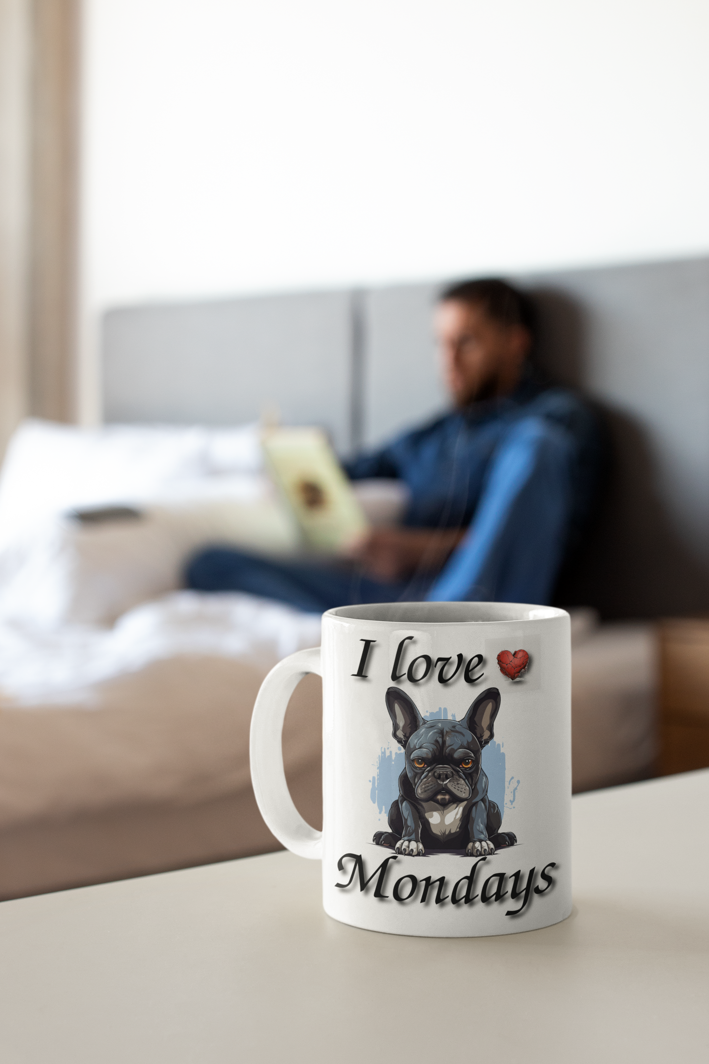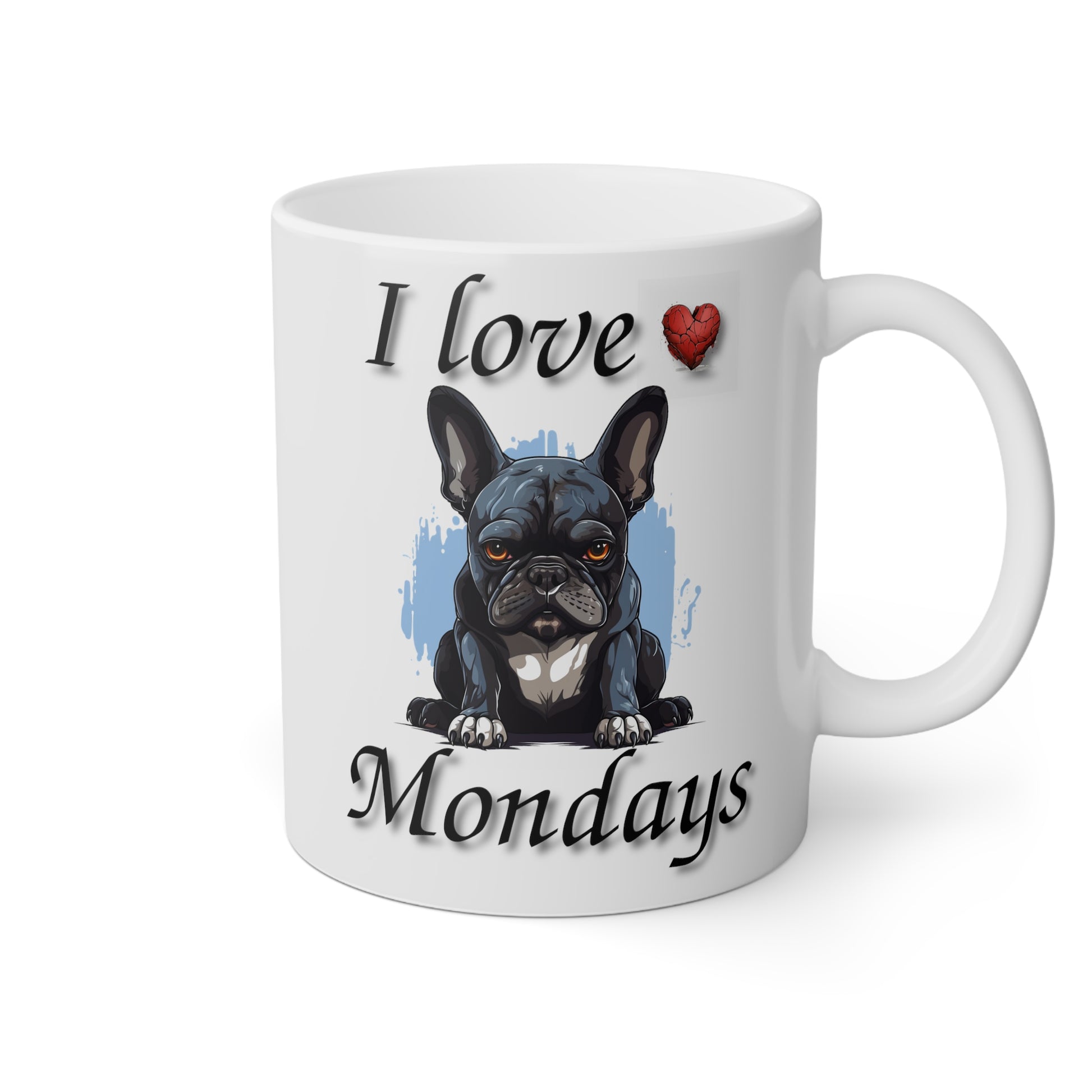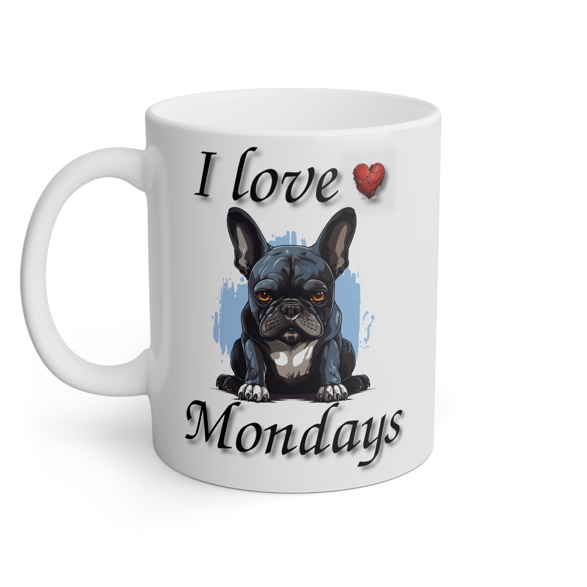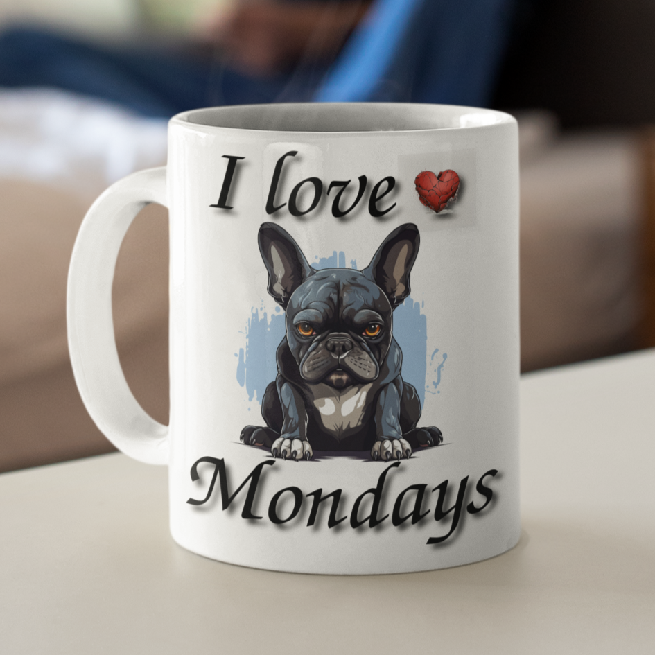 Say goodbye to the Monday blues with our "I Love Mondays" French Bulldog Mug! This adorable mug features a grumpy French Bulldog sporting a broken heart and a message that hilariously contradicts the day. Whether you're a true Monday enthusiast or just need an extra dose of humor to get through the week, this mug is here to brighten your mornings. Made from high-quality ceramic and designed to bring a smile to your face, it's the perfect quirky addition to your collection. Embrace the irony, enjoy your favorite brew, and show Mondays who's boss with this playful and oh-so-relatable mug!