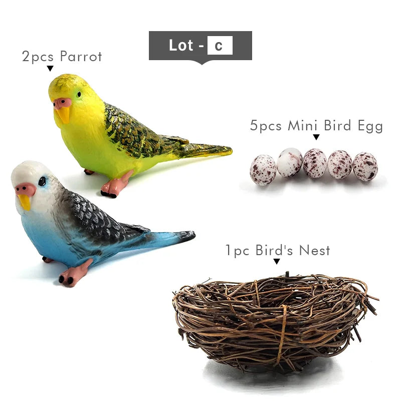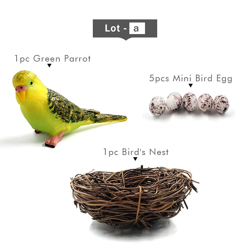 ress up your living space with a touch of feathered flair with our "Parrot Nest Figures"! This petite collection is a whimsical celebration of parrot cuteness, bringing the vibrant charm of these feathered friends right into your home, garden, or even your balcony. Each set includes a variety of parrot colors, a snug little nest, and even adorably tiny parrot egg replicas – it's the avian family you never knew your decor needed!