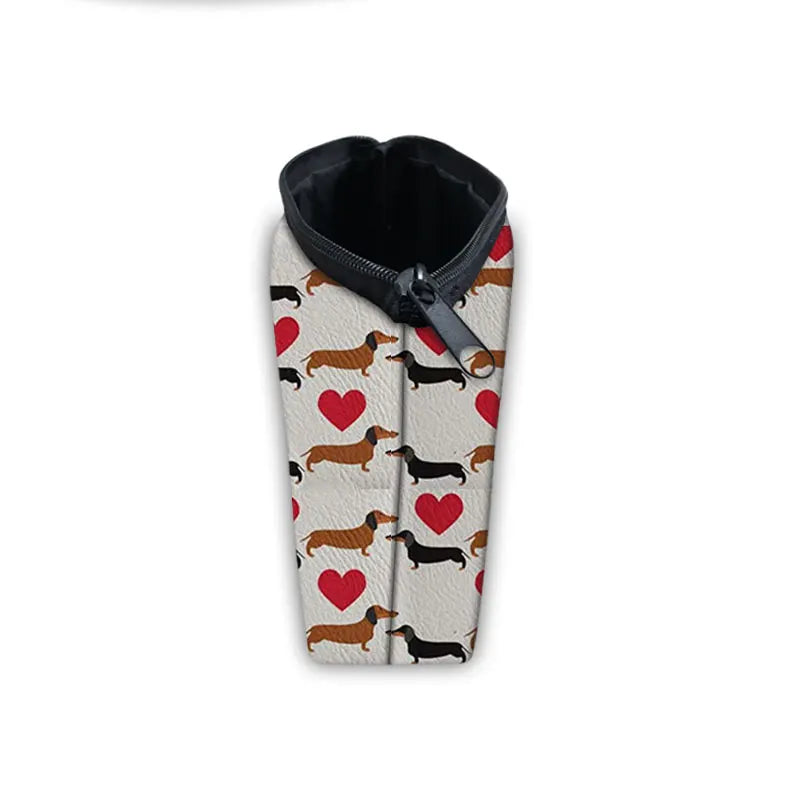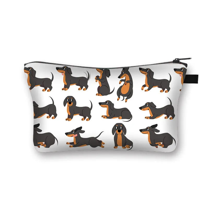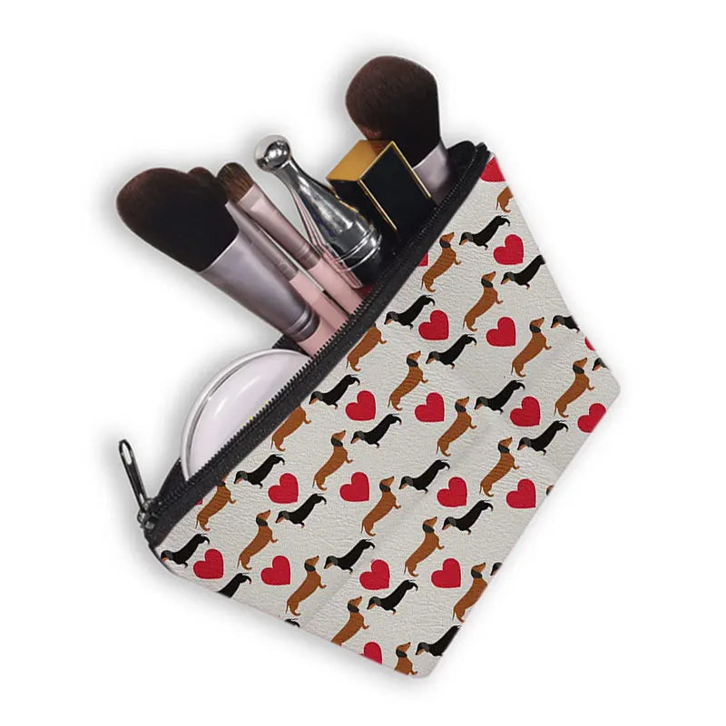 Elevate your style game with "The Dachshund Pouch" – because who says your makeup can't have a dash of Dachshund delight? This pouch isn't just a pouch; it's a parade of adorable Dachshunds ready to accompany you on your daily adventures. Whether you're into cute outlines, charming cartoons, or stylish snapshots, there's a Dachshund pouch that speaks your dog-loving language.