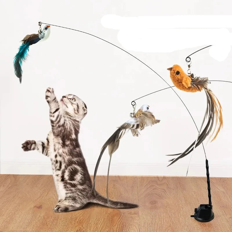 Unleash the inner hunter in your feline friend with "The Hunt Wand" – the ultimate source of feline entertainment that doesn't demand a PhD in physics! Picture this: a suction-cupped bird or feather clump on a mission to defy gravity, tethered to a wand that bends and wiggles like it's doing the cha-cha. When your cat decides it's playtime, the ensuing spectacle of airborne acrobatics is guaranteed to leave both you and your pet in stitches.