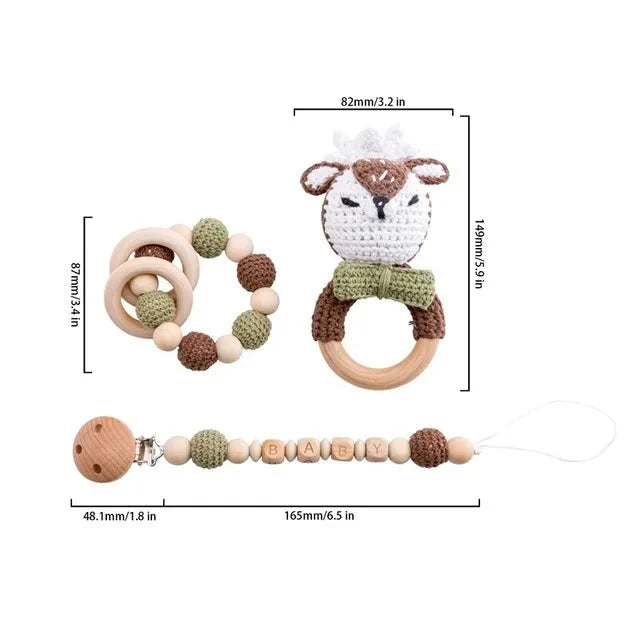 Welcome to the whimsical world of "Woodland Whispers Baby Rattle Set"! Delight your little one with these charming rattles that bring a touch of nature into playtime. Crafted from smooth wood and lovingly shaped like adorable animals, each rattle is a tiny treasure waiting to be discovered.